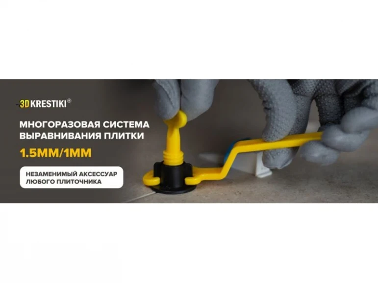 The Reusable 3D KRESTIKI Tile Leveling System is designed for use with conventional leveling systems, as an auxiliary tool or "repair kit".