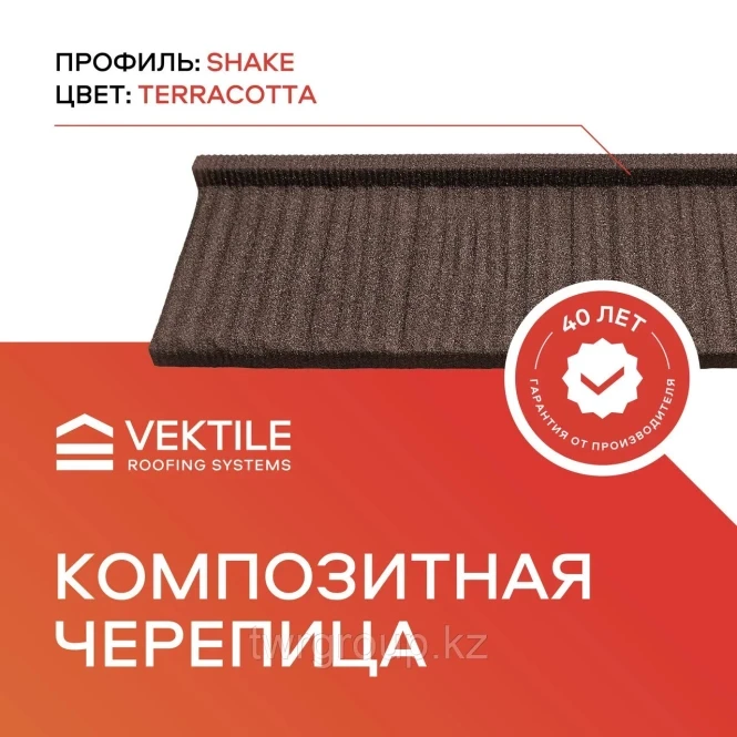 VEKTILE композиттік тақтайшасы Shake профилі-дәстүрлі ағаш тақтайшаның немесе "shake"көрінісін имитациялайтын заманауи материал. Ол беріктік пен эстетикалық көріністі қамтамасыз ететін битум, шыны талшық және полимер қоспалары сияқты берік материалдардың комбинациясынан жасалған. Shake-шатыр плиткалары шатырға классикалық, рустикалық стиль береді, бұл табиғи ағаш сезімін тудырады, бірақ ауа-райына төзімділігі жоғары және техникалық қызмет көрсету қажеттілігі аз.