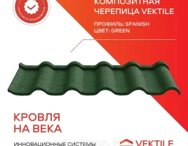Vektile composiet dakpannen, Spaans profiel, groen