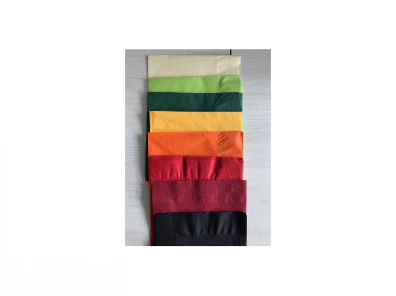 Rangli xizmat ko'rsatish salfetkalari, ikki qatlamli, 100 varaqdan iborat paketda
