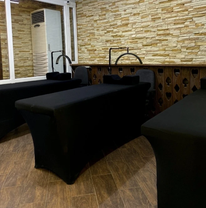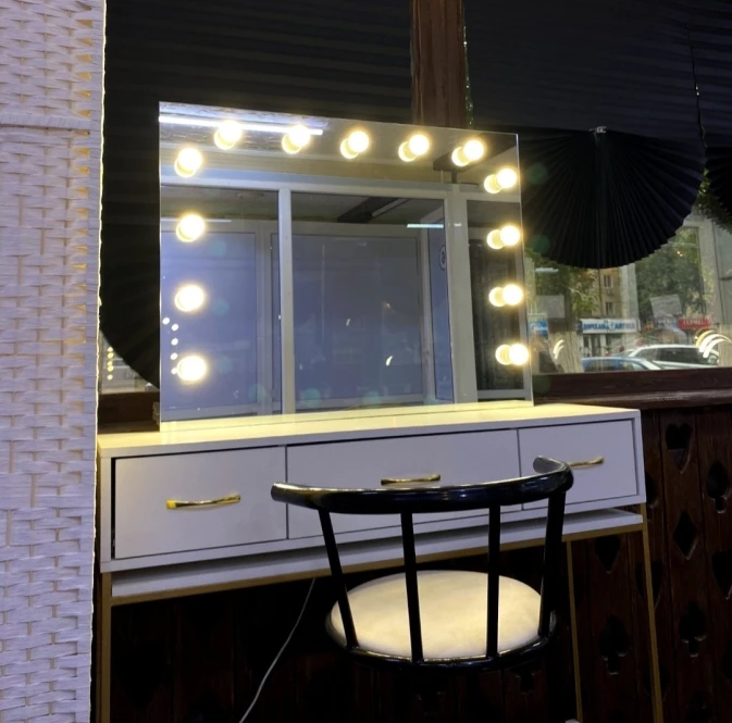 配备三张化妆/修眉沙发、一面镜子和一个化妆/修眉柜。